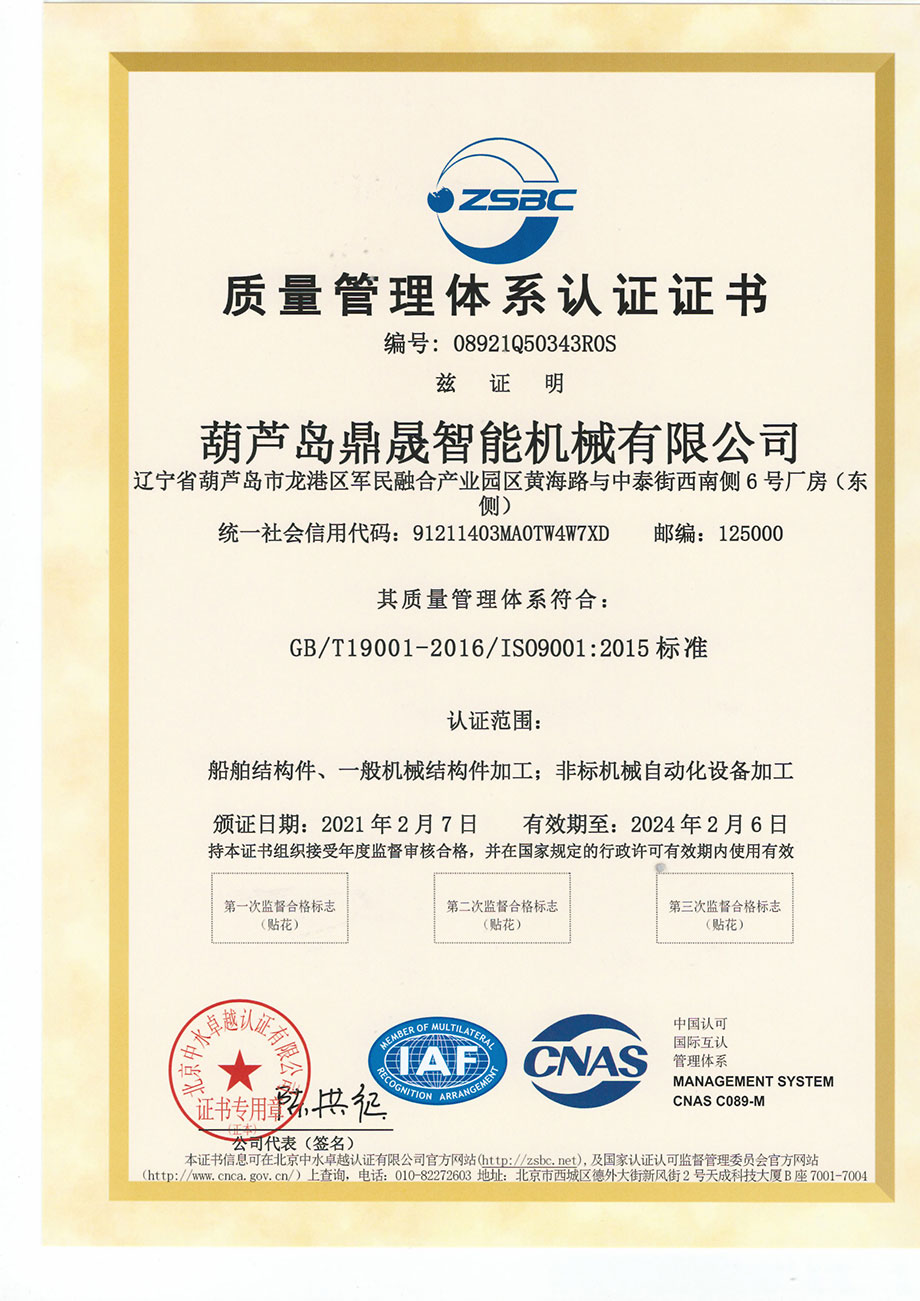 企業(yè)資質(zhì)-葫蘆島鼎晟智能機械有限公司